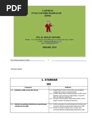 Dokumen evaluasi diri sekolahmadrasah tahun sebelumnya laporan . Hampir 10 triliyun untuk dana bos di madrasah setiap tahun. 3 permendiknas no 63 tahun 2009, tentang sistem penjaminan mutu pendidikan, pasal 7. Dokumen instruemen eds akan menjadi bukti fisik pelaksanaan akreditasi sekolah/madrasah disaat visitasi akreditasi dilaksanakan. Petunjuk teknis bimbingan teknis penerapan evaluasi diri madrasah (edm) dan rencana .